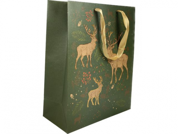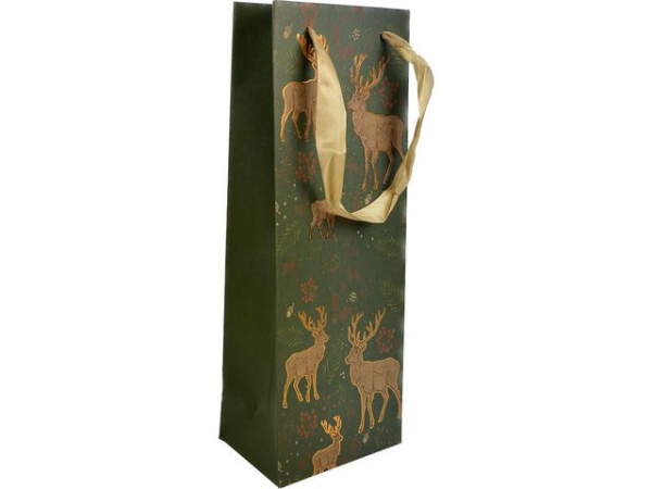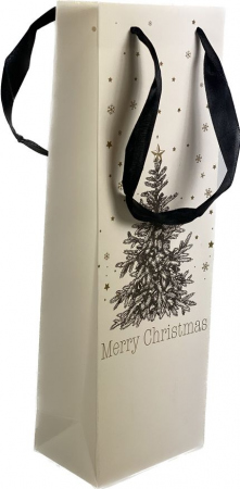 Flaskepose Hvit M/Sort Juletre Og Hjort