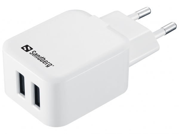 AC Charger Dual USB 2A EU, White/Black