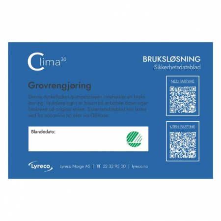 Bruksetikett Clima30 Grovrengjøring