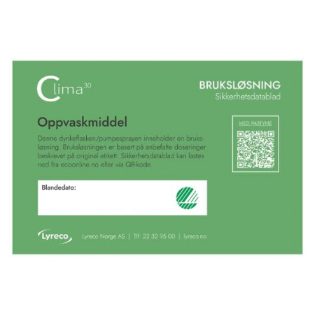 Bruksetikett Clima30 Oppvaskmiddel