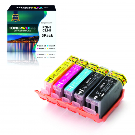Canon Blekkpakke BK/C/M/Y PGI-5 BK / CLI-8 (1x26,8 ml / 4x13,4 ml) - Erstatter
