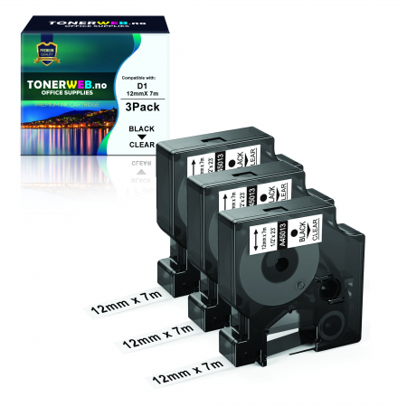 3 x DYMO Tape D1 12mm x 7m sort/klar S0720500 - Erstatter 45010