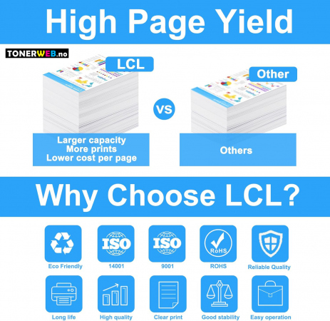 Tilsvarer original i kvalitet og antall utskrifter. Du har tre års garanti på kompatible.