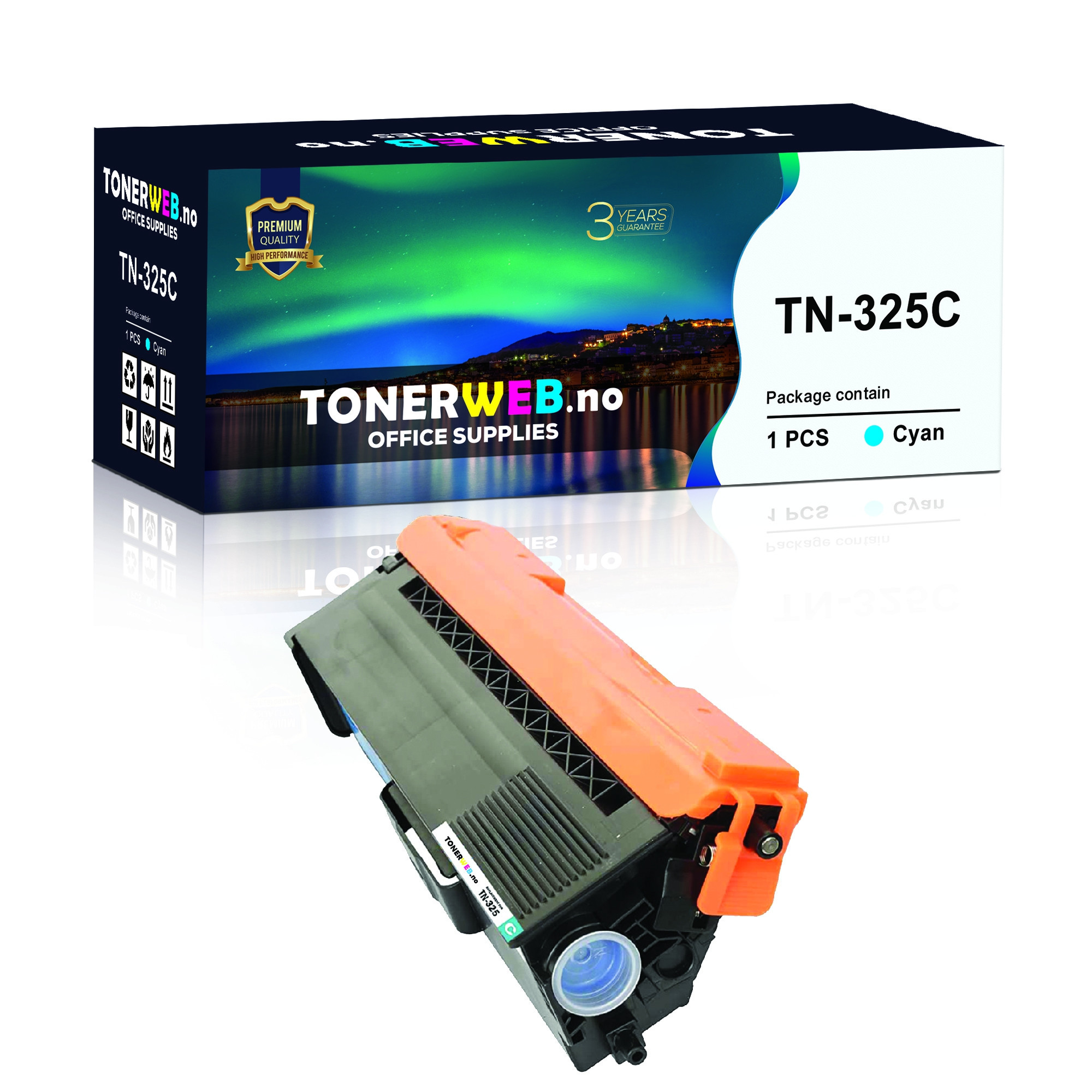 Tonerkassett, erstatter Brother TN-325C Cyan Høykapasitet (3.500 sider)