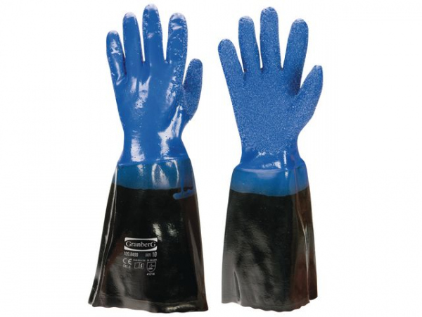Fiskerhansker vinyl/PVC med granulering, interlockfôr til håndtering av glatte gjenstander.