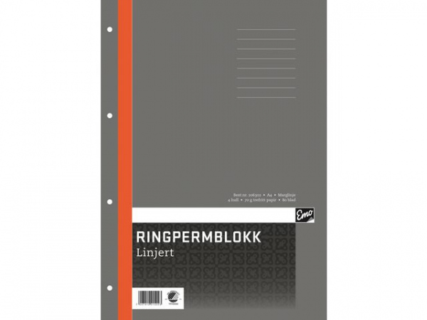 Ringpermblokk Emo A4 70G 80Bl Ulinjert (5 stk)