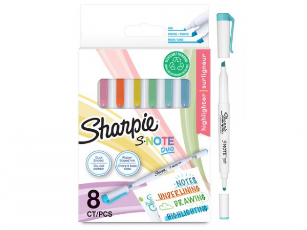 De er allsidige og morsomme og fungerer både som en markør og en highlighter. og tilfører en fargeklatt til notater, understreking, utheving, tegning og mer. Allsidighet er navnet på spillet med en meiselspiss som lar deg raskt bytte mellom presise og brede linjer. I tillegg holder blekket uten blø at arbeidet ditt ser rent ut. Slipp kreativiteten løs med Sharpie S-Note!