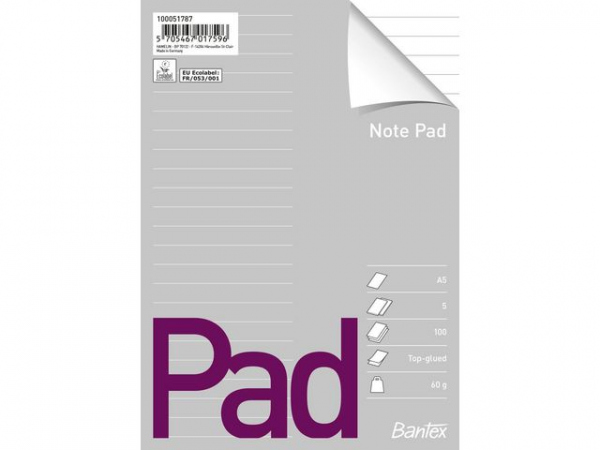 Notatblokk Bantex A5 Linjert 60G Topplim (5 stk)