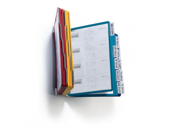 Veggstativ DJOIS A4 med 10 lommer og et patentert magnetisk monteringssystem. Perfekt for hyppig bruk, lommer kan enkelt fjernes og byttes ut. Lommene er laget av slitesterk PP med stålforsterkede rammer og bred hjørneåpning for rask dokumentinnsetting. Beskytter dokumenter mot støv og slitasje.
