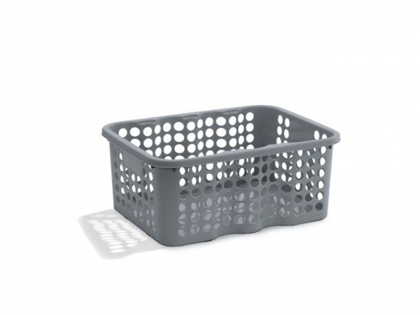 Nordiska Plast medium oppbevaringskurv i grå passer utmerket til lekerommet, kontoret, kjelleren eller garasjen. Kurven har en kapasitet på 6L og er tilpasset A4-format. Den er matvaregodkjent, BPA-fri og tåler temperaturer fra -40°C til +120°C.