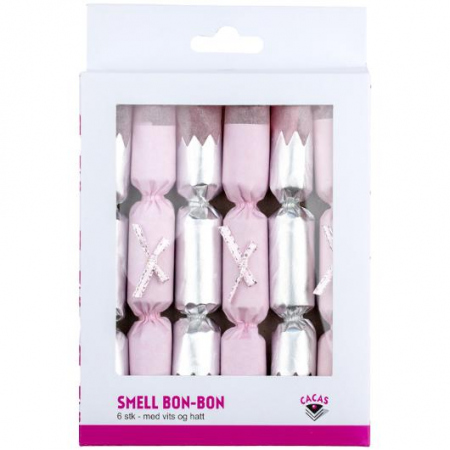 Hver bon-bon smeller når den trekkes fra hverandre, og inni finner du både vits og hatt.