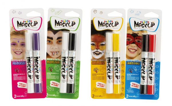 Ansiktsmaling fra Carioca. Fargestifter i tre forskjellige farger. Fra 3 år.