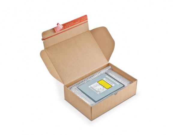 Colompac CP 080.04 er en modulboks med forhåndslimt konstruksjon som gir rask og enkel montering. Den selvklebende lukkemekanismen gjør pakkeprosessen smidig og sikker, uten behov for tape eller ekstra festemidler. Esken er optimalisert for postforsendelser og laget av solid papp.