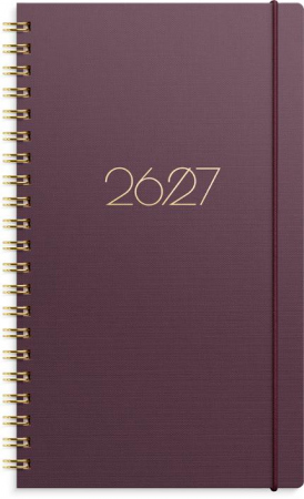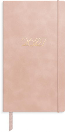 Ukekalender innbundet i rosafarget imitert skinn, edge-cut bind og papirlomme bak Preget årstall Vertikal strikk for lukking Kalendariske opplysninger for hele inneværende og påfølgende år Årsoversikter for hele inneværende og påfølgende år Månedsplan for studieåret Timeplan Infosider Notatsider Trykket på 100 g. FSC®papir Format: 148 x 210 mm.